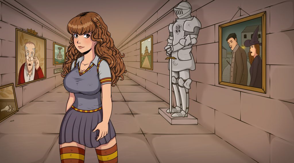 游戏简介:推出的一款SLG游戏,你是个大鼻子精灵,穿越到魔法学院假扮教授,赫敏是学院里成绩优秀的女学生。你要用各种手段把她从一个乖乖女变成堕落的碧池,送她各种羞耻的服饰和道具。